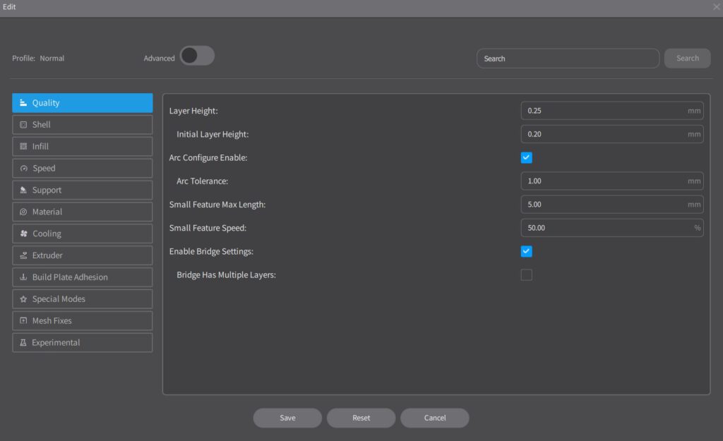 Small Feature Speed | Druckgeschwindigkeit für kleine Details | Bei sehr kleinen Teilen wird automatisch langsamer gedruckt – damit nix verwackelt oder schmilzt. |
