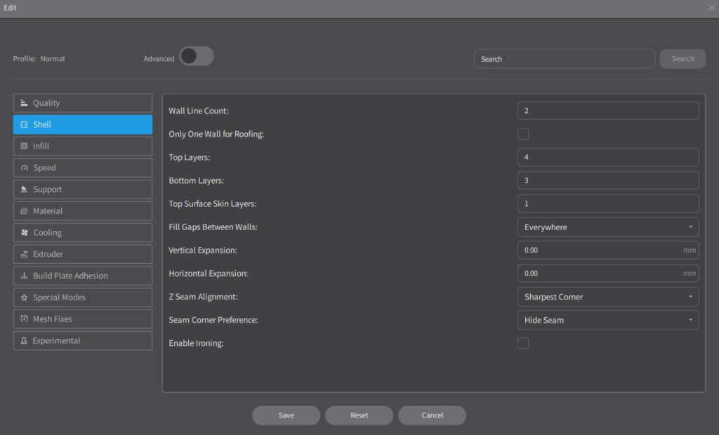 Wall Line Count | Anzahl der Wandlinien | Wie viele Linien nebeneinander die Außenhülle bildet. 2 ist Standard. Mehr = stabiler. |