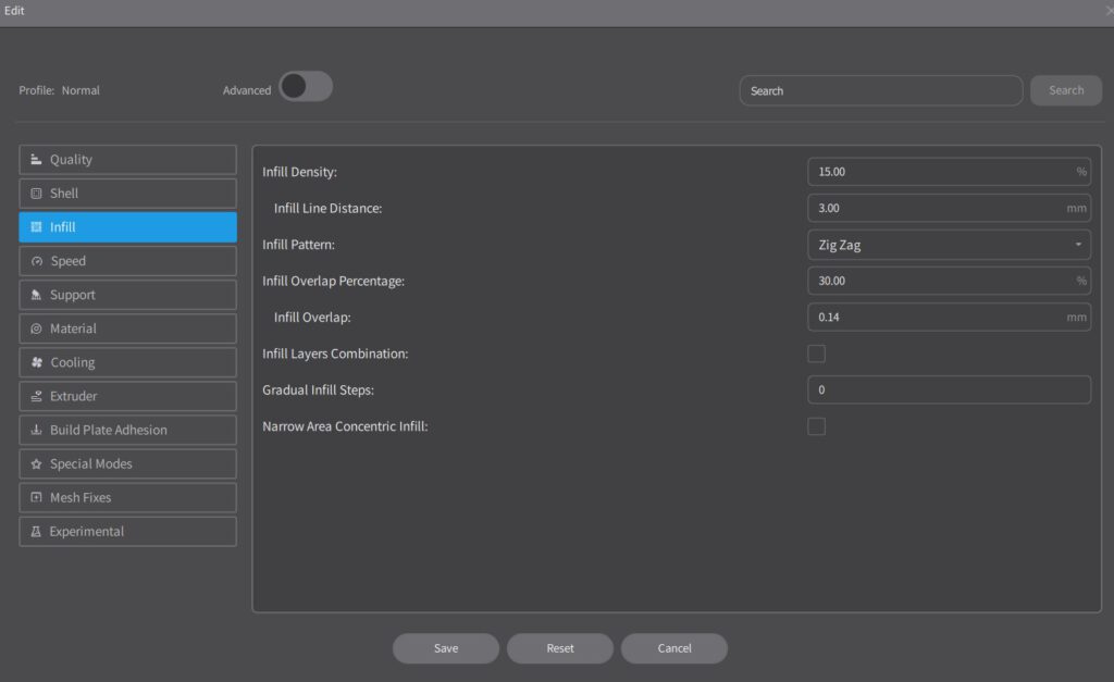 Narrow Area Concentric Infill | Konzentrisches Infill für enge Bereiche | Spezialmodus: Wenn Infill in engen Zonen spiralig statt linear angelegt werden soll – optisch fein. |