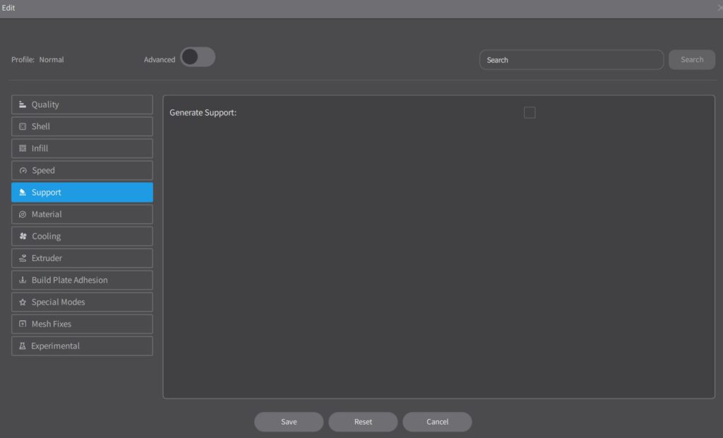 Generate Support | Stützstruktur erzeugen | Aktivieren, wenn dein Modell Überhänge oder „schwebende“ Teile hat. |