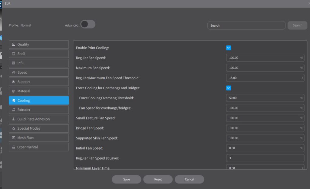 Force Cooling for Overhangs and Bridges | Erzwinge Kühlung bei Überhängen und Brücken | Sehr nützlich bei steilen Winkeln. |